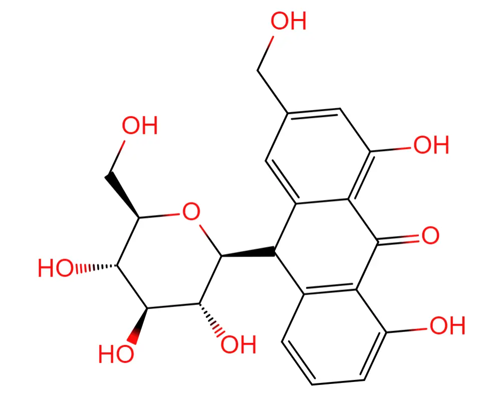 Barbaloin, also known as aloin, is a natural anthraquinone glycoside found primarily in the outer leaf of the Aloe vera plant. This bitter, yellow-brown compound is responsible for many of the medicinal properties associated with Aloe vera. Barbaloin acts as a protective mechanism for the plant, deterring animals from consuming it due to its bitter taste.